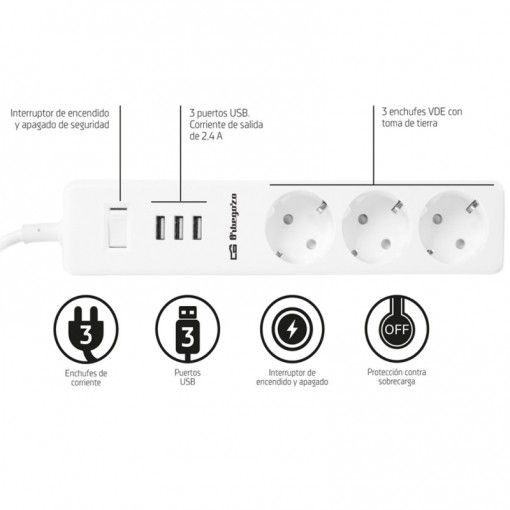 ORBEGOZO REGLETA EN-3000 3 ENCHUFES + 3 USB