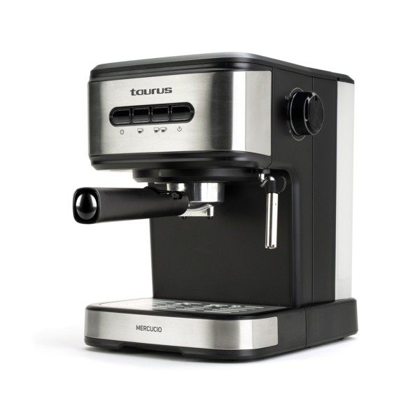 Taurus Mercucio. Tipo de producto: Máquina espresso, Capacidad de reservorio de agua: 1,5 L, Café tipo de entrada: De café molido, Depósito para café preparado: Taza. Potencia: 850 W. Color del producto: Negro, Acero inoxidable