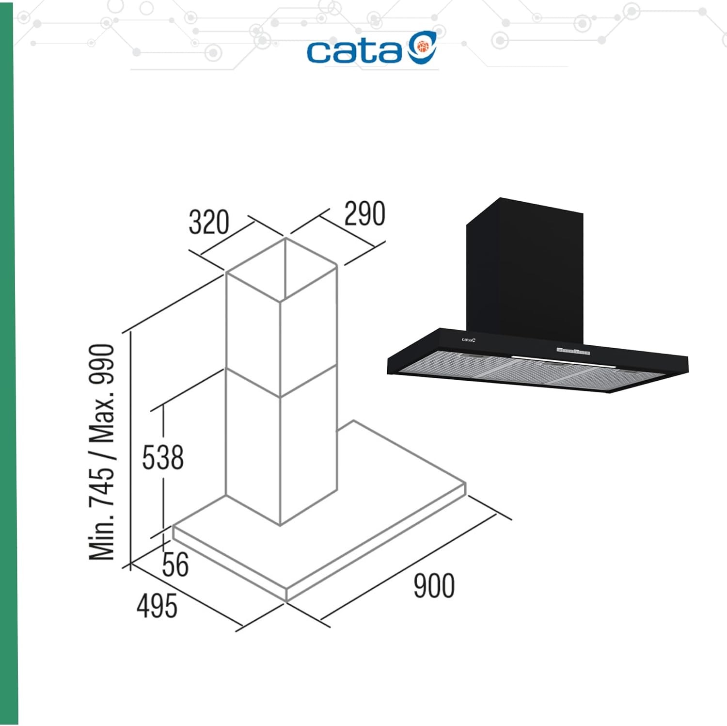 CATA CAMPANA SYGMA 9010BK NEGRA/DECORATIVA/90Cm/850m3/h.