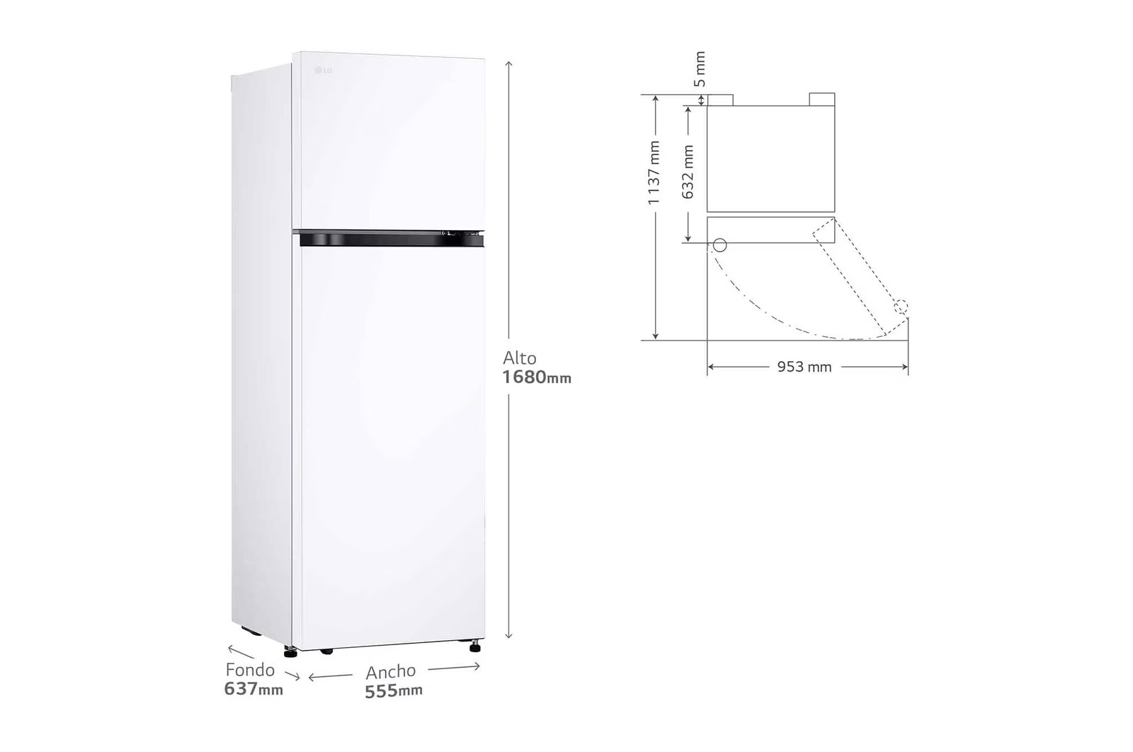 LG FRIGORIFICO GTBV20SWZJD BLANCO 2P 168×56 N.F. CLASE E