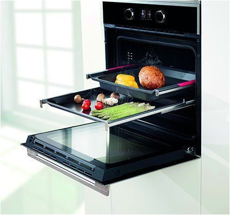 Sistema de guías extraíbles para hornoLas guías opcionales pueden ser instaladas en los hornos con guías cromadas o sistemas de guías telescópicas de serie