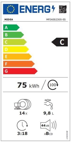 Midea Lavavajillas MFD60S230S 14 Servicios Inox Clase C