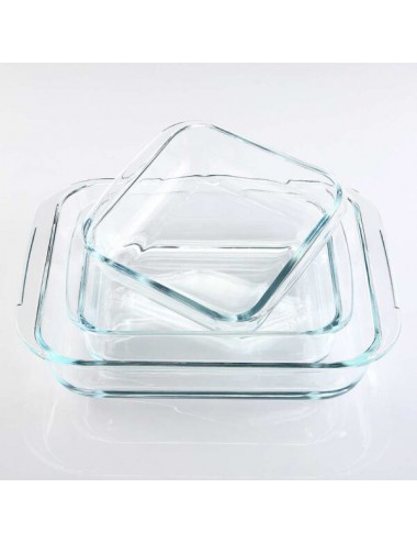 Esta bandeja está fabricada con vidrio de borosilicato de alta calidad, lo que le confiere una excelente resistencia y durabilidad. Su forma rectangular la hace ideal para una variedad de usos en la cocina, optimizando el espacio de almacenamiento y presentación.