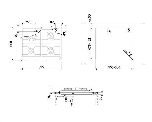 Smeg Encimera Gas SRV864AOGH 4 Fuegos Antracita 60cm