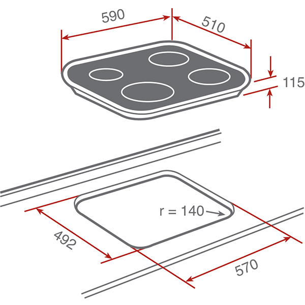 - Número de zonas: 4 quemadores
