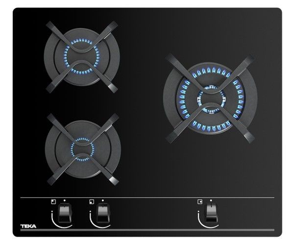 Teka Encimera CristalGas GBC63010 3 Fuegos 60cm Cristal Negro Gas Butano