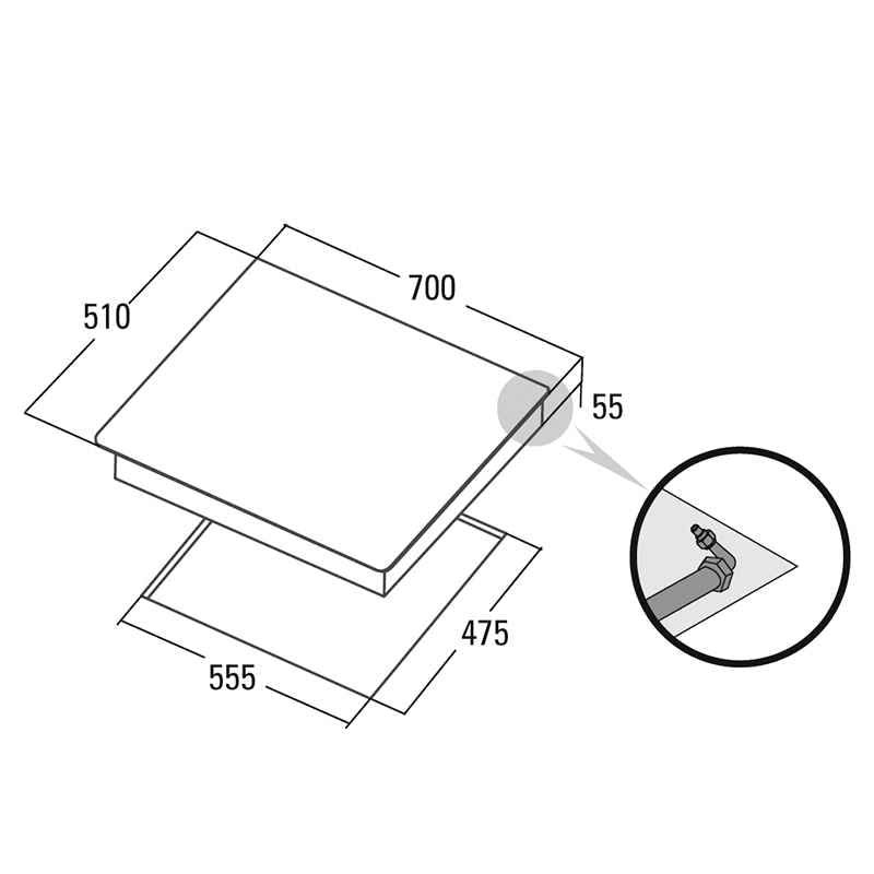 Cata Placa Gas L-7005 CI 70cm Cristal Negro 5 Zonas Integrable