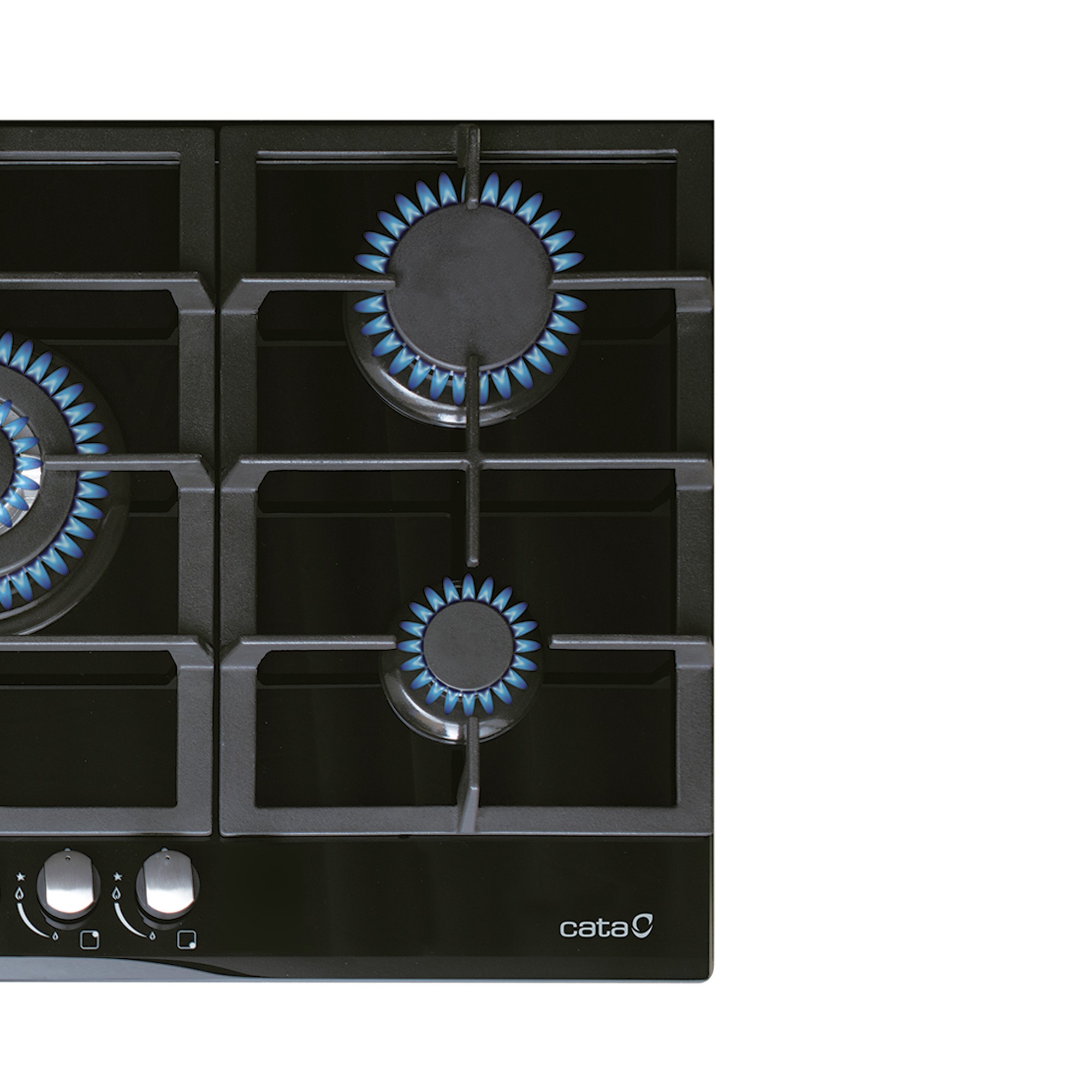 Cata Placa Gas LCI 9041 BK 5 Fuegos Vidrio Negro Soportes Fundición Clase A