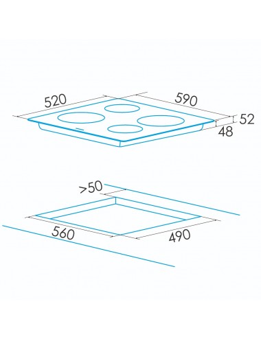 Color del producto: Negro, Tipo de instalación: Integrado, Número de zonas de cocción: 3 zona(s). Tipo de control: Tocar, Control de posición: Parte superior delantera. Voltaje de entrada AC: 220 - 240 V, Frecuencia de entrada AC: 50 - 60 Hz. Ancho: 590 mm, Profundidad: 520 mm, Altura: 38 mm. |